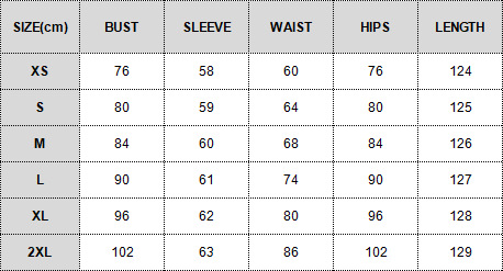 Sizes: XS, S, M, L, XL, XXL